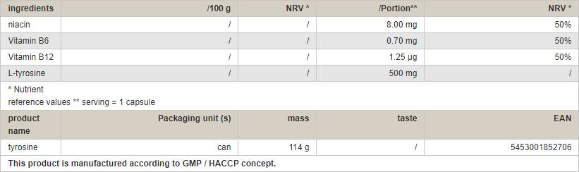 Upute za uporabu : Tirozin - 1 do 2 kapsule dnevno, najbolje na prazan želudac s vodom ili sokom.