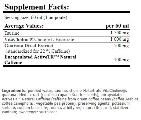Guarana, glavni sastojak proizvoda, poznata je po svom učinku suzbijanja umora i sposobnosti razgradnje mliječne kiseline koja se stvara tijekom fizičkog napora. Znanstvene studije pokazale su da guarana sadrži kofein, teobromin i teofilin, koji također doprinose povećanju energije i poboljšanju fizičke izdržljivosti.