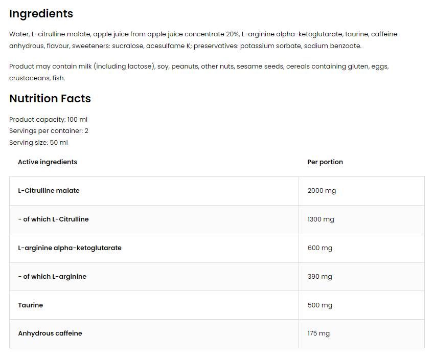 Pump prije treninga Jedinstvena je kombinacija četiri aktivna sastojka, odgovorna za podršku tijekom treninga – L-citrulin malat, AAKG, taurin i bezvodna kofa. Aktivni sastojci dodanog sadržaja za pojačano krvosnabdijevanje u muskulatu, dok ste aktivni, tako da korištenje mišićne pumpe postaje još po-silno.