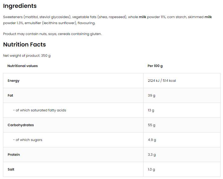 Proteinski namaz Creametto s okusom bijele čokolade savršen je izbor za sve koji žele poboljšati svoju prehranu i zadržati aktivan način života. S visokim udjelom proteina i zdravih masnoća, ovaj je proizvod izvrstan za podršku rastu mišića i oporavku nakon tjelesne aktivnosti. Osim toga, zadovoljava potrebu za slatkim užitkom bez dodavanja nepotrebnih kalorija, što ga čini savršenim za doručak ili desert.