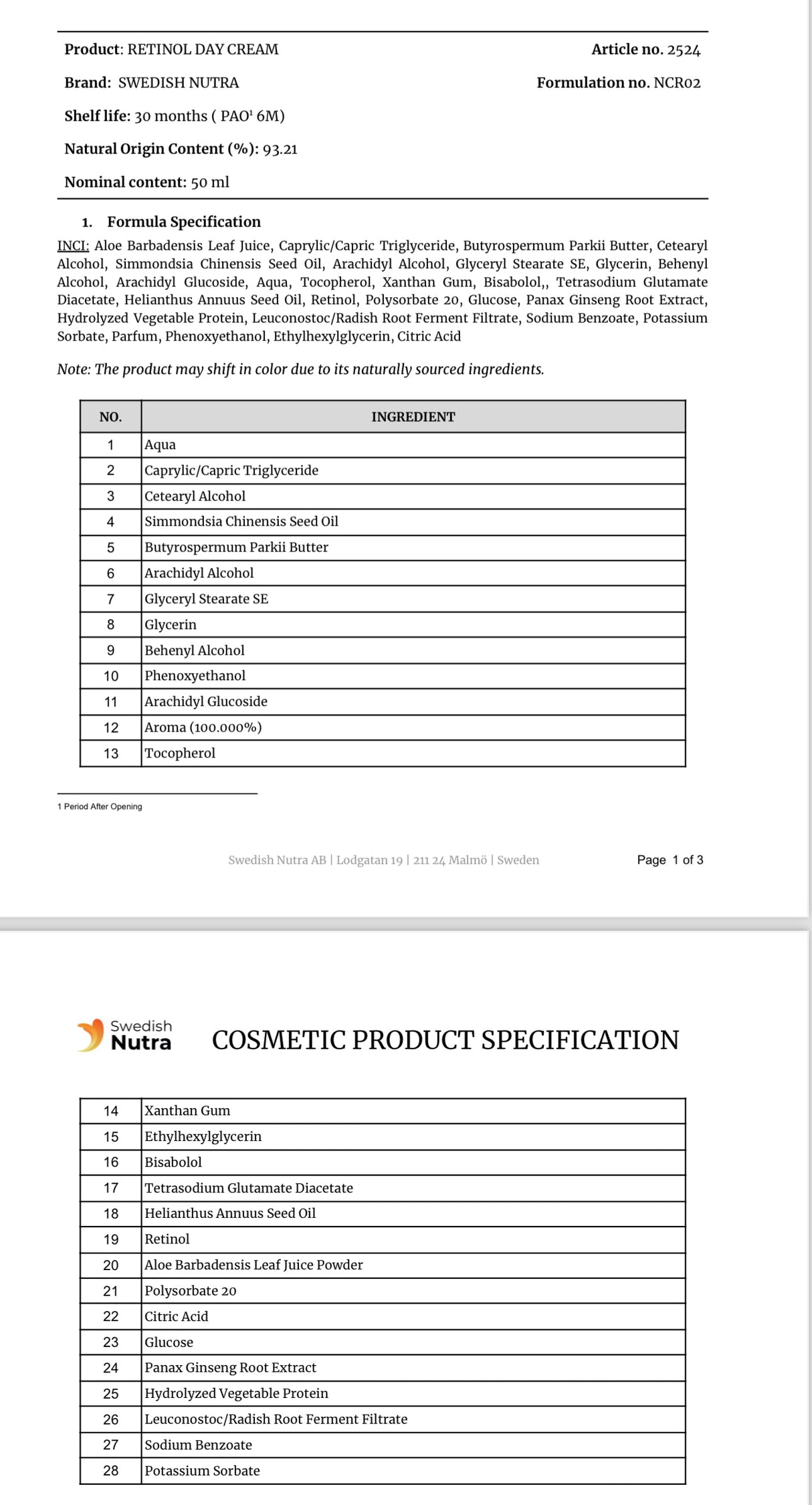 Swedish Collagen Dnevna krema s retinolom, hijaluronom i kolagenom vaš je vjerni saveznik u borbi protiv znakova starenja. Sadrži aktivne sastojke kao što su retinol, hijaluronska kiselina i riblji kolagen, ova krema temeljito vlaži i hrani kožu. Vitamin E i organski shea maslac dodatno pružaju zaštitu i ugodu, dok ekstrakt ginsenga štiti od UV oštećenja. Ova je formula posebno osmišljena kako bi vaša koža ostala čvrsta, elastična i blistava.