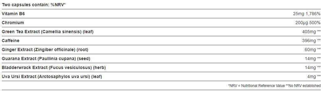 Samo za odrasle. Ovaj proizvod je dodatak prehrani. Nemojte uzimati ako ste alergični na bilo koji od sastojaka. Posavjetujte se s liječnikom prije uzimanja ako ste trudni, dojite, pokušavate zatrudnjeti, uzimate lijekove ili imate zdravstveno stanje. Ovaj proizvod sadrži kofein. Dijabetičari / Hipoglikemici : Koristiti samo pod liječničkim nadzorom.
