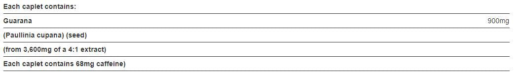 Super Guarana 1200 mg po Holland And Barrett je ekstrakt sjemenki guarane - prirodnog izvora čistog kofeina (sadrži do pet puta više kofeina od zrna kave). Svaka kapsula daje tijelu 68 mg. kofein.