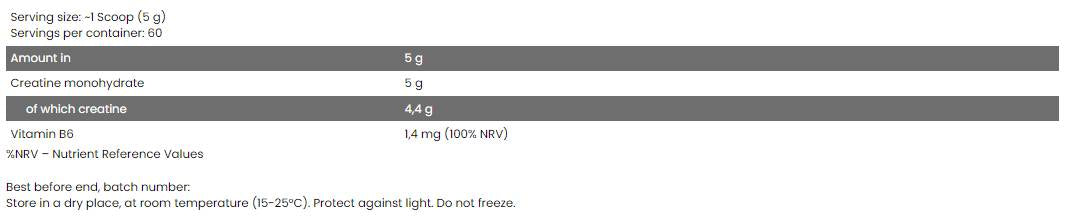 Čisti, visokokvalitetni monohidrat – punih 5 g kreatina farmaceutske kvalitete!