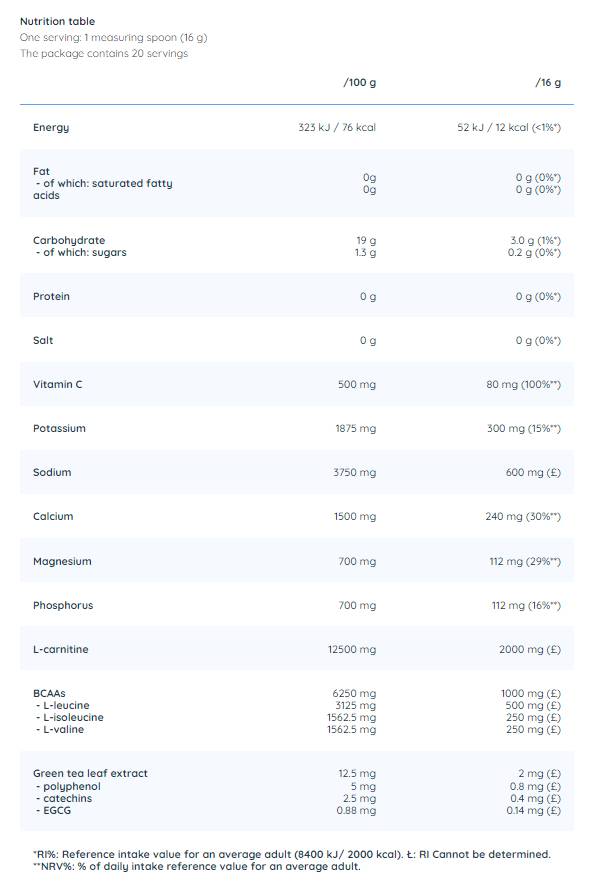 Elektrolitni prah | s BCAA, L -karnitinom i zelenim čajem - 320 grama
