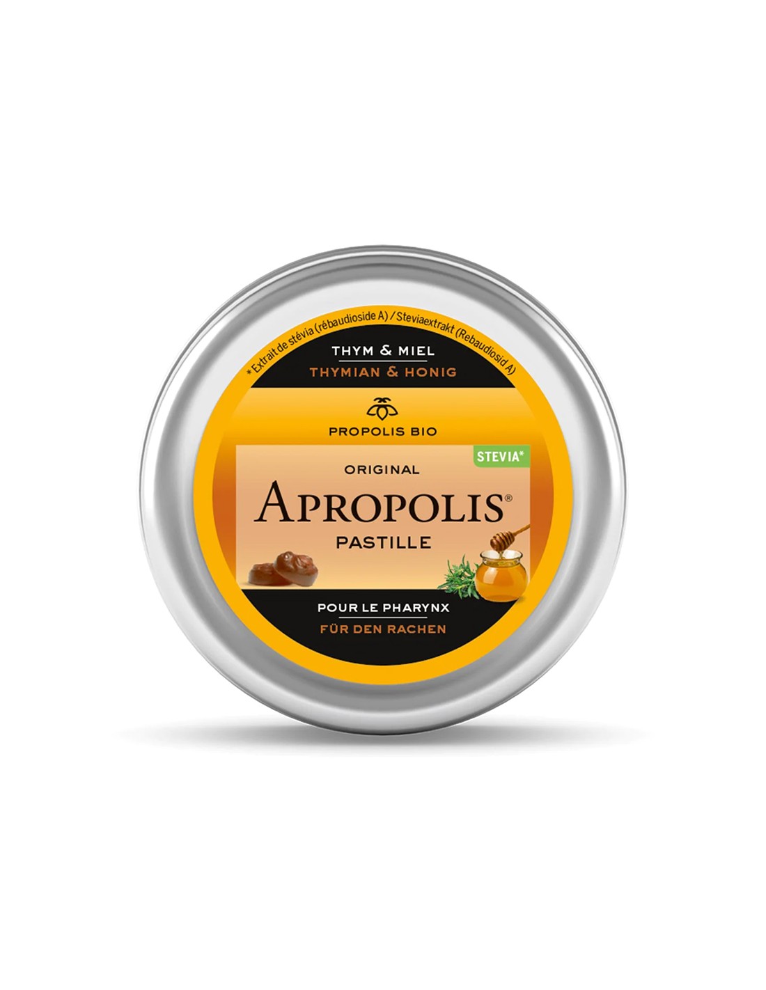 Original Apropolis® pastile Thym and Miel / Pastile od meda i majčine dušice je proizvod koji podržava normalno stanje grla i dišnog sustava. Ovaj jedinstveni proizvod objedinjuje blagotvorna svojstva propolisa, meda i majčine dušice. Ove pastile kreirane su s pažnjom prema vašem zdravlju i kombiniraju prirodne sastojke koji pozitivno djeluju na grlo i dišni sustav.