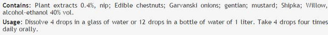 Biljni ekstrakti 0,4%: Konjski rep; Kesten; Gavranov luk; Gorčica; Senf; Šipak; Vrba