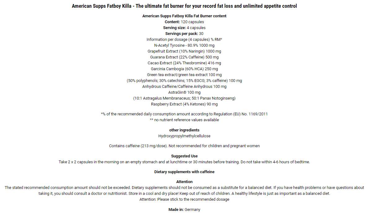 Fatboy Killa® | Hardcore njemački sagorjevač masti - 120 kapsula