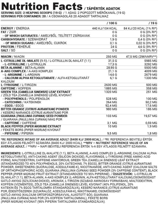 Pomiješajte 1 porciju (19 g) u 250 ml hladne vode i konzumirajte 30 minuta prije početka treninga.