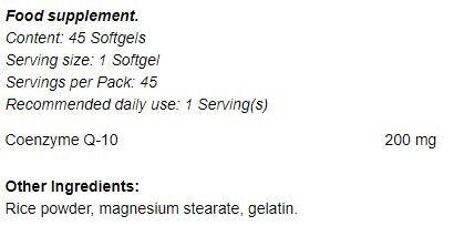 Sastojci: Koenzim Q10, rižin prah, magnezijev stearat, želatina