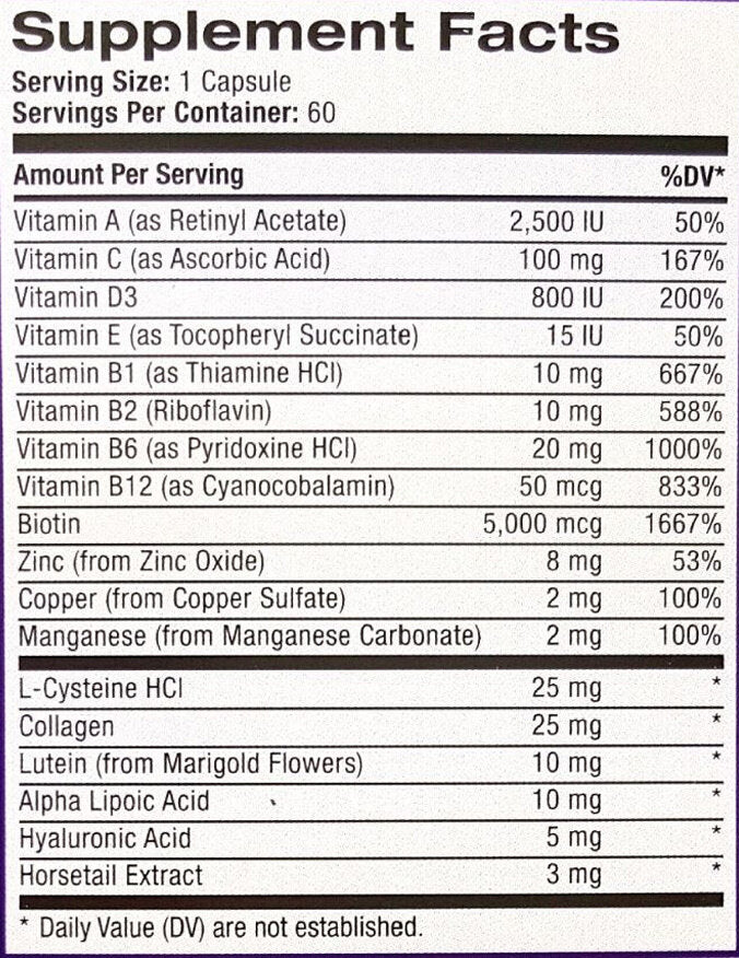 Natrol Koža, kosa i nokti i kolagen je proizvod koji koži vraća svjež izgled i elastičnost te pomaže u borbi protiv prvih znakova starenja. Dodatak impresionira bogatim sastavom koji doprinosi regeneraciji stanica i čvrstoći kose i noktiju.