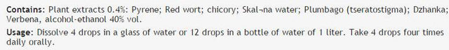 Način upotrebe: 4 kapi otopite u čaši vode ili 12 kapi u boci vode od 1 litre. Uzimajte 4 kapi četiri puta dnevno oralno.