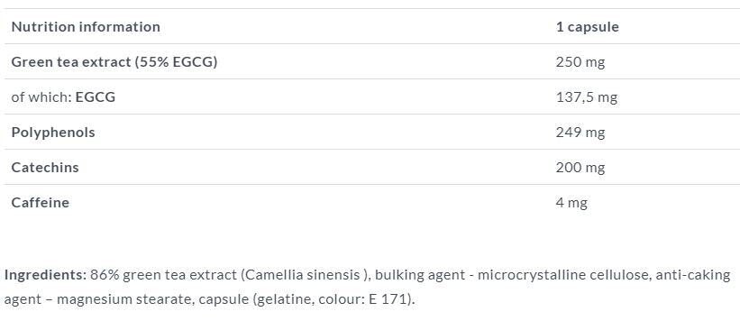 Olimp Zeleni čaj bogat je izvor polifenola (katehini, flavonoli, fenolne kiseline) i metilksantina (kofein, teofilin, teobromin). U ljudskom tijelu katehini reguliraju aktivnost mnogih enzima, a također pospješuju razgradnju masnog tkiva. U kombinaciji s kofeinom, katehini i fenolne kiseline pospješuju termogenezu. Tako se mast nakupljena u tijelu pretvara u energiju.