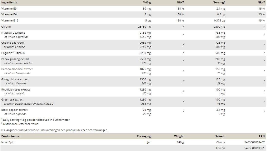 Nootropni | s holinom, bakopom i rodiolom - 240 grama