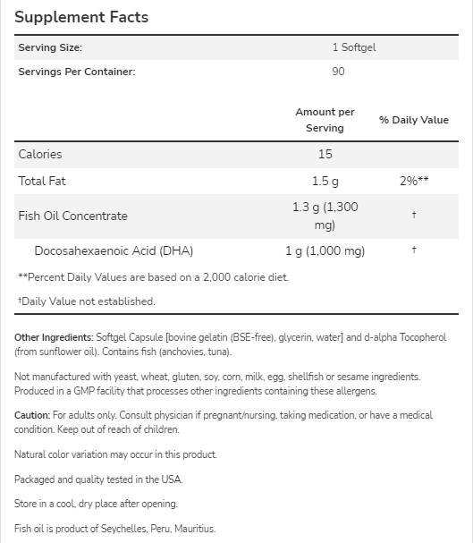 DHA - 1000 | Podrška mozga - 90 gel kapsula