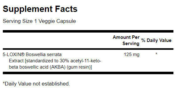 Boswellia serrata jedna je od najčešće proučavanih biljaka, s općepriznatim zdravstvenim prednostima. Ali kod biljnih dodataka prehrani uvijek postoji rizik – varijacije u sastavu mogu utjecati na učinkovitost proizvoda. 5-Loxin® je standardizirani ekstrakt Boswellia serrata, koji sadrži patentiranu formulu koja osigurava dosljednu količinu glavnog aktivnog sastojka u svakoj vege kapsuli.