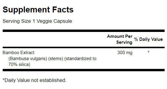 Kvalitetan silicij iz našeg ekstrakta bambusa izvrstan je način da osigurate zdrav unos ove vrijedne hranjive tvari koja hrani brojna vitalna tkiva. Vjerojatno već znate da je preslica odličan izvor silicija, ali to nije ništa u usporedbi s bambusom. Dok preslica sadrži oko 7% silicija, bambus ima prosječnu koncentraciju od 70% silicija! Prosječna osoba zadržava oko 20 g silicijevog dioksida u tijelu, no ta se razina s godinama smanjuje zbog slabije sposobnosti tijela da ga asimilira, ali i drugih čimbenika. Nadopunite svoju dnevnu prehranu silicijem za zdravu kosu, kožu i nokte!