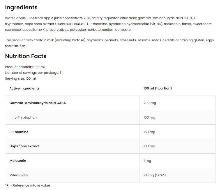 Melatonin je hormon poznat kao "hormon spavanja" jer pomaže tijelu regulirati ciklus spavanja i buđenja. Gaba je neurotransmiter koji ima smirujući učinak na živčani sustav, smanjujući anksioznost i stres. L-teanin je aminokiselina koja se nalazi u zelenom čaju i ima smirujuća svojstva koja mogu pomoći u smanjenju anksioznosti i poboljšanju kvalitete sna.