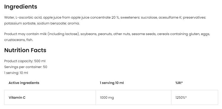Upozorenja i kontraindikacije: Uzimanje visokih doza vitamina C može kod nekih ljudi uzrokovati gastrointestinalne probleme. Prije uzimanja dodataka prehrani posavjetujte se sa zdravstvenim djelatnikom, posebno ako imate bilo kakvih već postojećih zdravstvenih problema.
