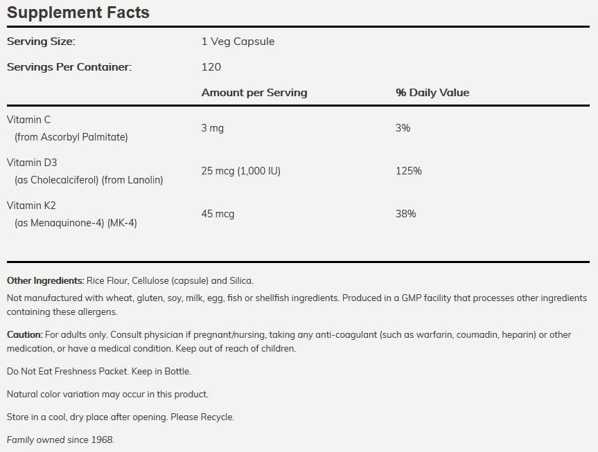 Vitamin D-3 1000 IU + K-2 45 mcg-120 kapsula