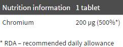 Chromium aktivan je visokokvalitetni dodatak kroma koji sadrži 200 mikrograma u jednoj tableti.