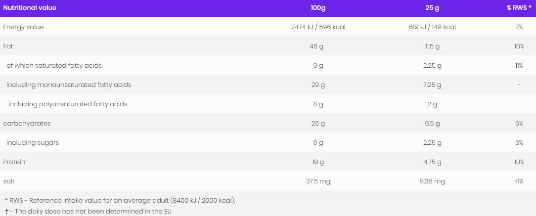 Upozorenja: Izbjegavajte osobe alergične na orašaste plodove. Prije uporabe posavjetujte se s liječnikom ako imate specifične zdravstvene probleme.