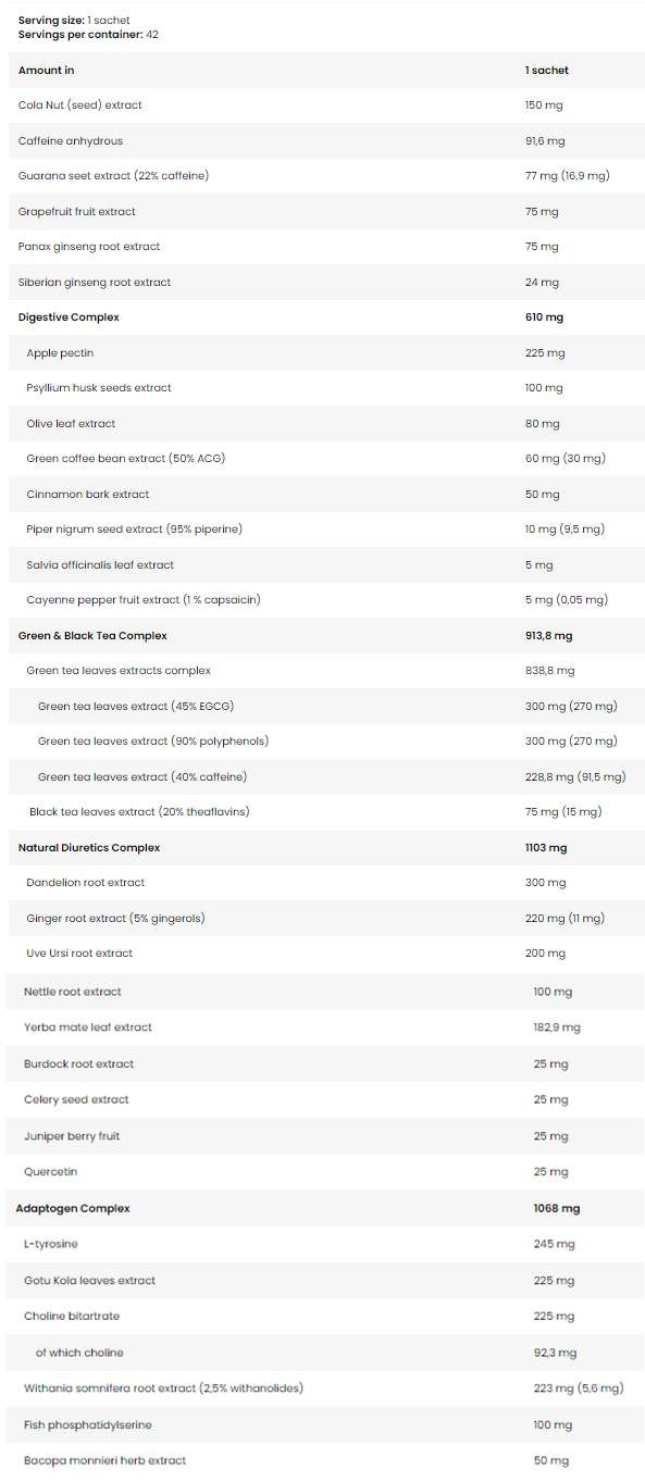 • Ekstrakt zelenog čaja : pomaže u održavanju povišene razine norepinefrina, što je korisno za sagorijevanje masti.