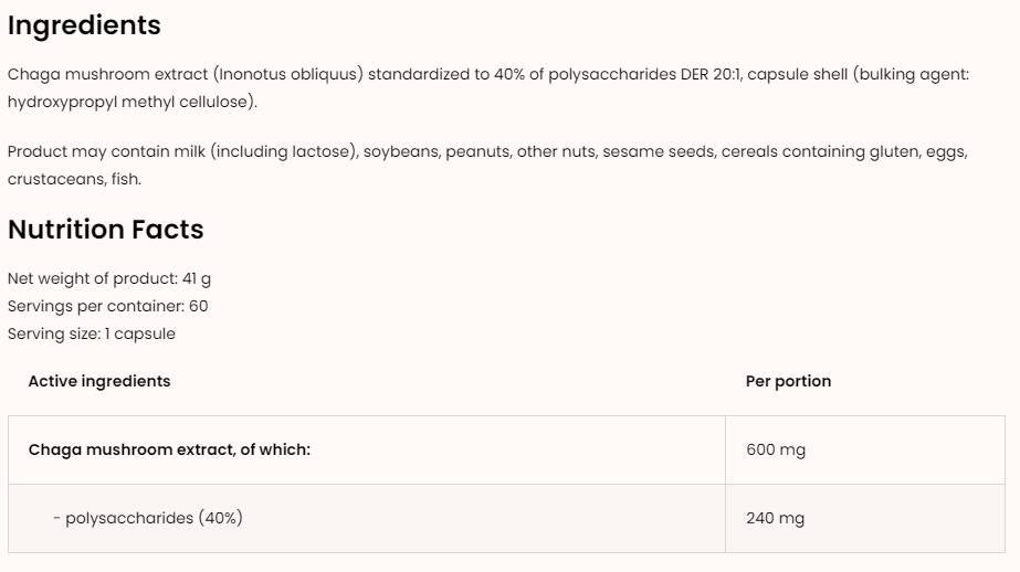 Chaga, poznata i kao "crna gljiva", snažan je prirodni proizvod bogat antioksidansima, vitaminima i mineralima. Uzimanje Chaga 600 mg kapsula može pomoći u jačanju imunološkog sustava te dati energiju i izdržljivost, što je posebno važno za aktivne osobe. Ova gljiva također nudi niz dobrobiti za kardiovaskularni sustav i podržava zdravlje kože, zahvaljujući svojim protuupalnim svojstvima.