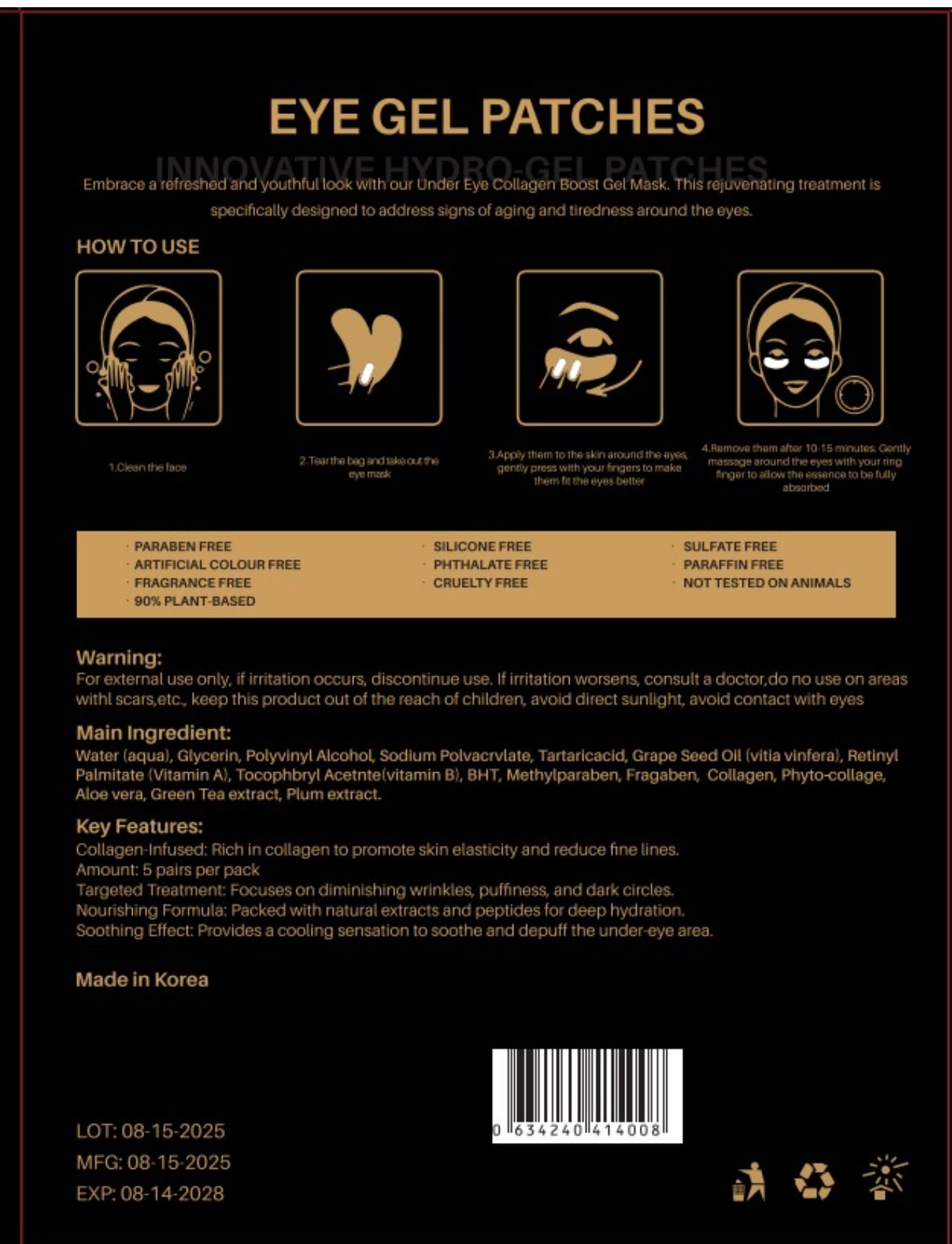 Eye patches with collagen and gold essence - care for a youthful look, promotes elasticity and hydration 👁️✨