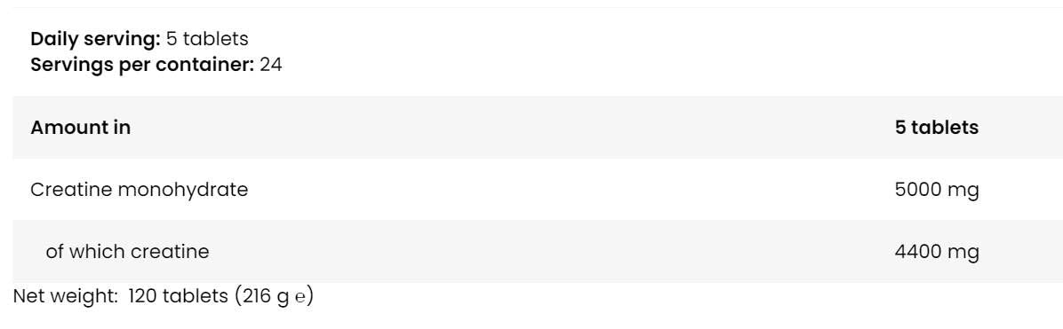 Kreatin povećava fizičke performanse tijekom uzastopnih, kratkotrajnih, visokointenzivnih vježbi; blagotvoran učinak postiže se dnevnim unosom od 3 g kreatina.