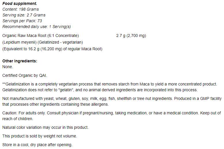 Maca 6: 1 Koncentrati čisti prah - 198 grama