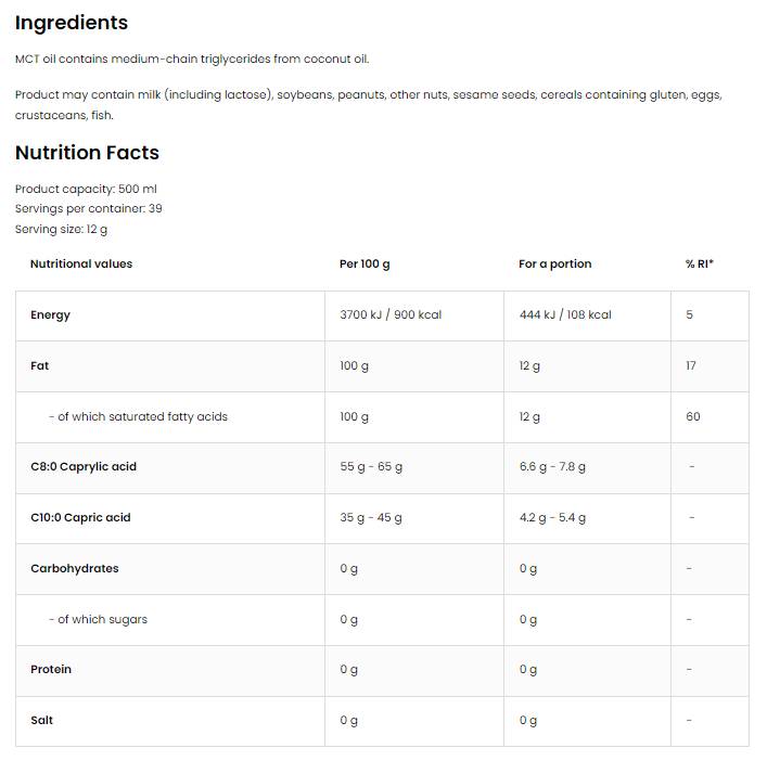 MCT kokosovo ulje | Vrhunska kvaliteta C8 + C10 500 ml