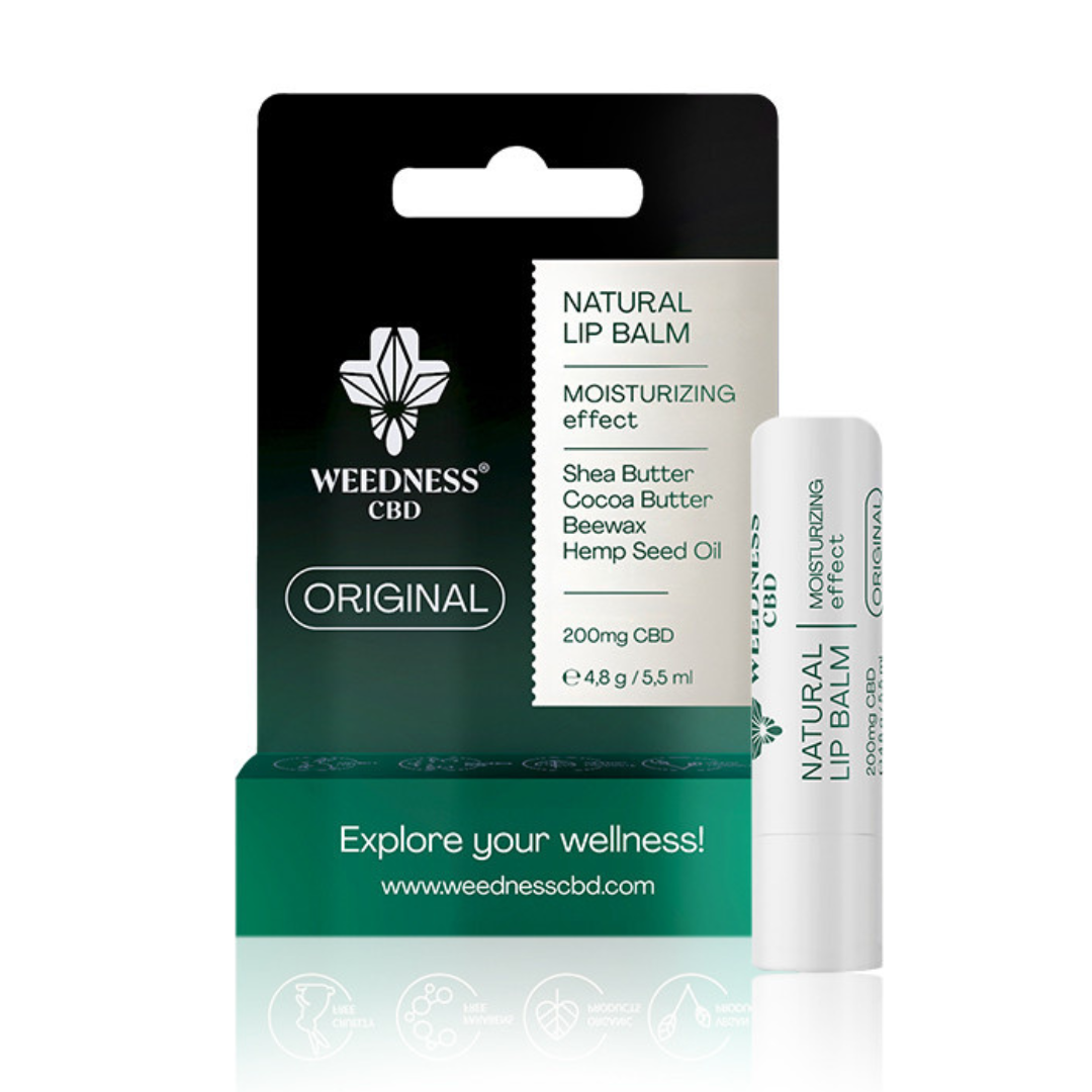 - Prirodni balzam za usne, obogaćen s 200 mg CBD-a, koji umiruje, duboko vlaži i štiti od oksidativnog stresa i od sinje svjetline, emitiran na ekranu.