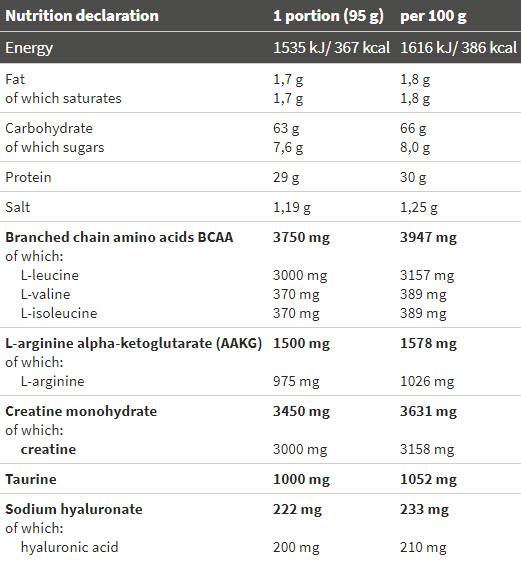 REANIMATOR sadrži sve bitne sastojke za regeneraciju i razvoj mišića, u oblicima koji su najkorisniji i lako dostupni mišićnom tkivu. Proizvod se temelji na tvarima koje djeluju sinkronizirano i imaju različita vremena apsorpcije kako bi se osigurao stalan pristup energetskim spojevima, hranjivim tvarima i gradivnim blokovima mišićnog tkiva nakon treninga. Osim toga, proizvod je obogaćen kolagenom, glukozamin sulfatom i hijaluronskom kiselinom - makromolekulama koje su najvrjednije za hranjenje, hidrataciju i obnovu mišićno-koštanog sustava te olakšavanje obnove tetiva, ligamenata i zglobova oštećenih kao posljedica dugotrajnog i intenzivnog vježbanja.